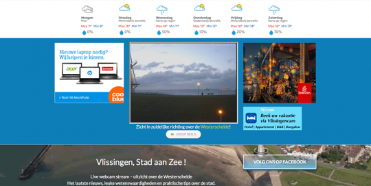 cindy2017-12-01T15:49:19+01:00Vlissingencam.nl streams a 24/7 live webcam feed from the Oranjedijk. The site contains useful information about the city, latest news, webshops, hotel booking, a job board and info about the Western Scheldt river and tunnel. In Dutch language and targeted on Vlissingen and regions surrounding de river.
